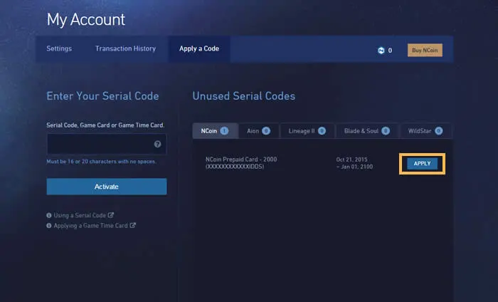 Redeem NCoin to your NCSoft accounts to purchase and use it to buy in-game items for major games like Blade and Soul.